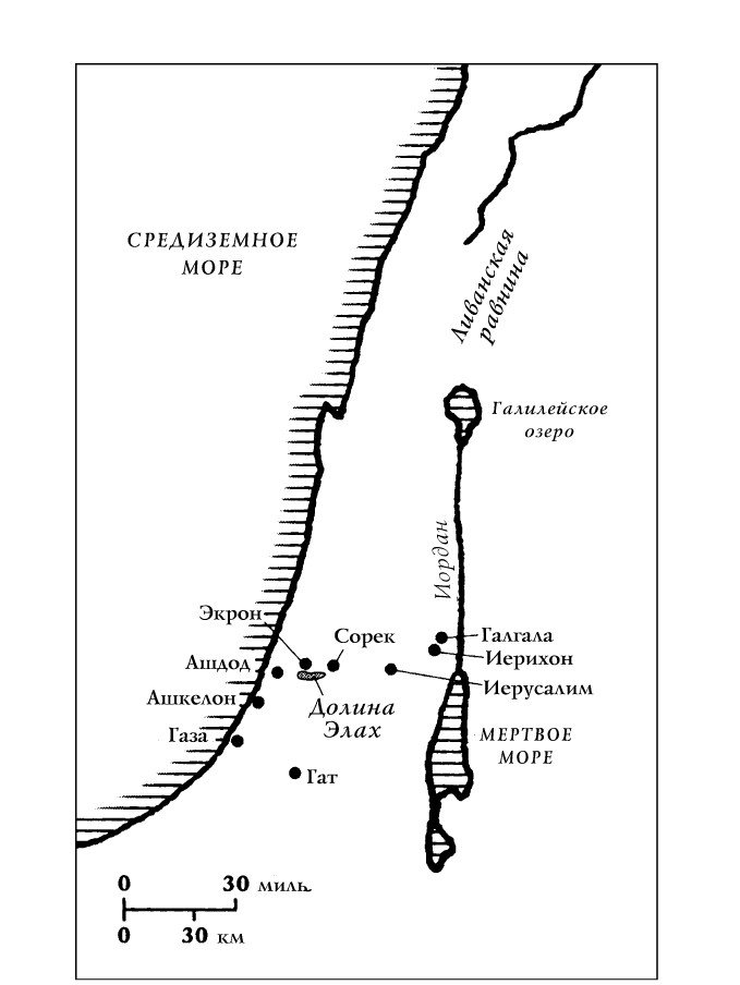 Но огромные территории Ханаана оставались незанятыми. Во-первых, филистимляне теперь владели землями от Аккарона вниз, вдоль берега Средиземного моря, и они не хотели уступать ни пяди территории вновь прибывающим. Все те годы, что Израилем управляли судьи, он вел сражение за сражением против филистимлян [43].