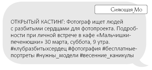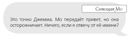 Джемма выхватила у меня телефон и отбежала на пару шагов. Она печатала быстрее, чем я могла прочитать, и отправила сообщение раньше, чем я смогла вернуть телефон обратно. Я взглянула на экран, и сердце тут же успокоилось.