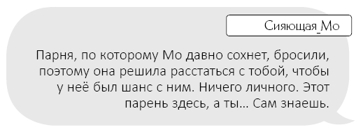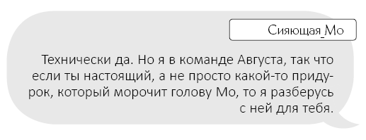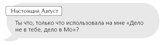 – По сообщениям не похоже, что он злится. По крайней мере, из-за фальшивых отношений. Но он совершенно точно обижен из-за расставания. Кажется, что он знал о ваших отношениях уже какое-то время. – Она вдруг подпрыгнула на месте и начала трясти меня за плечо, пытаясь привлечь моё внимание ещё больше. – О, точно! Стихотворение! Ставлю на то, что это правда настоящий Август, как говорится в нике. Ты же говорила, что он участвовал в какой-то художественной программе? Что, если ты ему нравишься, Мо?