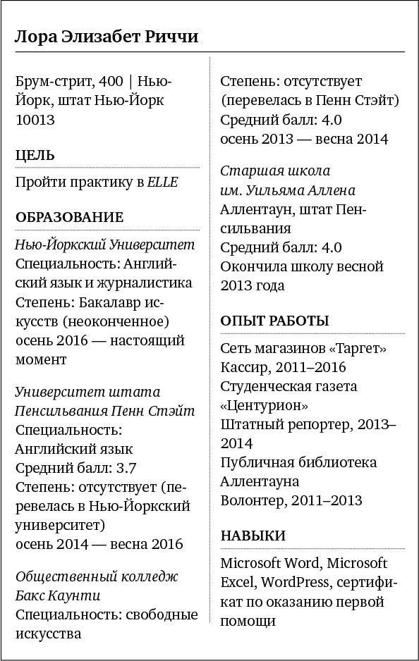 я бы хотела пройти летнюю практику в ELLE. В настоящее время я учусь в Нью-Йоркском университете по программе двойной специализации «английский язык и журналистика».