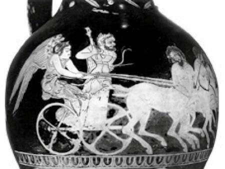 (8)Геракл и Ника едут на колеснице, запряженной четырьмя кентаврами