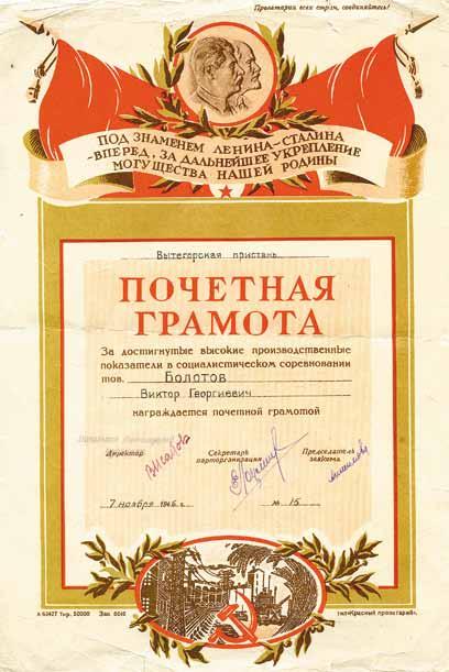 Почетная грамота 1946 г. Архив И. Веселовой