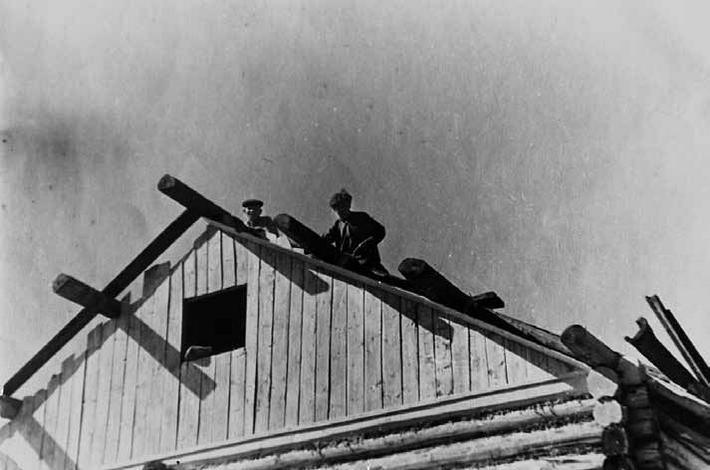 «Помочи». Строительство деревенского дома. Из коллекции музея «Дом деда Мартына». Фото И. Веселовой. Июль 2007 г. Деревня Селище Лешуконского района Архангельской области