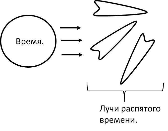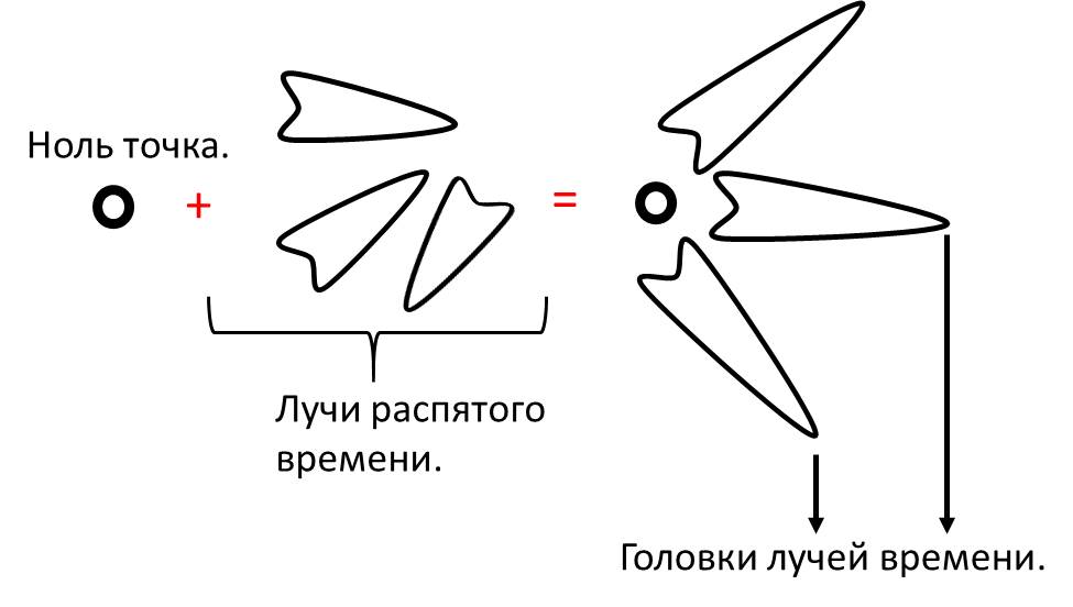 К лучам распятого времени добавляют ноль точку. Ноль точка насаживает на себя концы лучей времени, жопки.