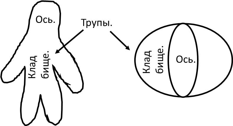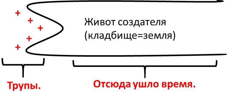 Да создатель по своему подобию сотворил плоть и человека, и животного, и растения. А он и есть кладбище, куда надо вернуть рожденное им время. И так мы имеем: безвремя + пришитое к нему время за концы лучей + выпуск ткани распятого времени в ткани других временных тканей + программы возврата времени с названием: перо МААТ + программы задержки времени, сюда сливаются все, кто не сдал экзамен пера МААТ. Если создатель – это кладбище, у которого нет ног, и оно с места не двигается, то в отличии от себя всех, кто смешался с его результатом труда (лучом времени) он одел в плоть, имеющую ноги. Именно он, создатель, родил такое изобретение как кладбище, умеющее преследовать еду ногами. Обратите внимание на отличия: кладбище (живот) создателя работает так: голодает, пока пища не набегается, не напрыгается и сама от усталости не завалится с ног в живот клада. Кладбище (живот) человека (мясоедов)работает так: не терпит голод, а хоронит еду, у которой много сил бегать, прыгать, носиться.