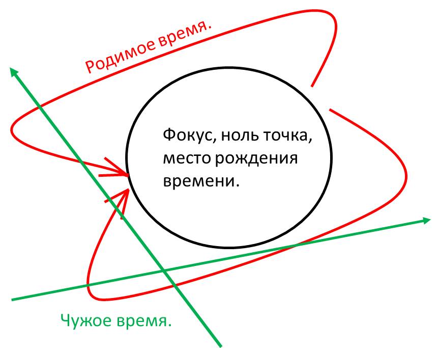 Рассмотрим подробнее в чем каждый из нас принимает участие: для этого надо рассмотреть ЗАКОЛЬЦОВКУ ВРЕМЕНИ. Она находится в том месте, где луч времени и сделал себе рождение и (пройдя сквозь камень чужого времени, для человека это животные) вернулся к своему месту первоначального рождения: