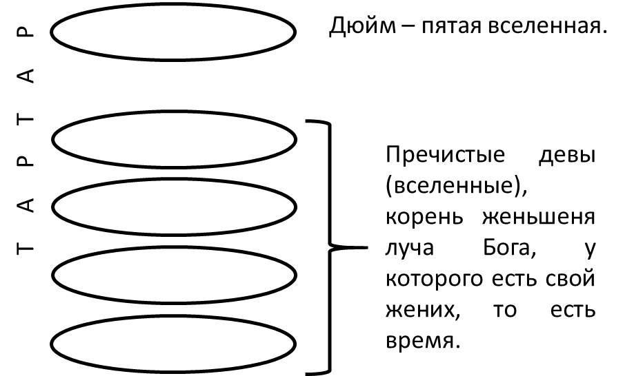 Всего ТАРТАР должен состоять из 100 вселенных. Дюйм – это пятая вселенная, у которой жениха (то есть времени) нет, поэтому вы, ТРОЯ, смогли войти во вселенную Дюйма. У нас родилась девочка, у которой нет жениха. Мы подали заявку на смотрины женихов: кто хочет стать нашей девочке Дюйму женихом?
