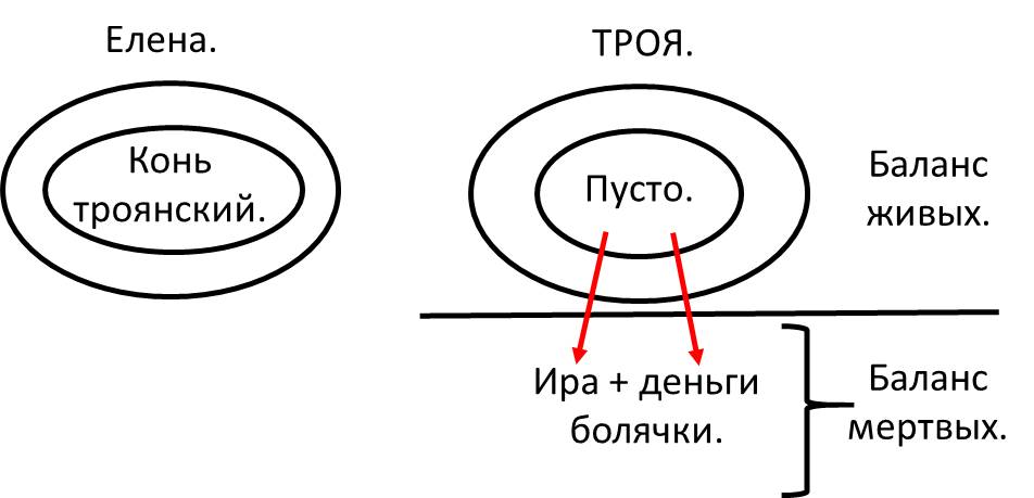 После того, как Бог и ТРОЯ обменялись деньгами, Ира приехала в ТРОЮ через баланс мертвых и из ТРОИ ВЫДРАЛА кусок денег через программу РОСТА БОЛЯЧКИ.
