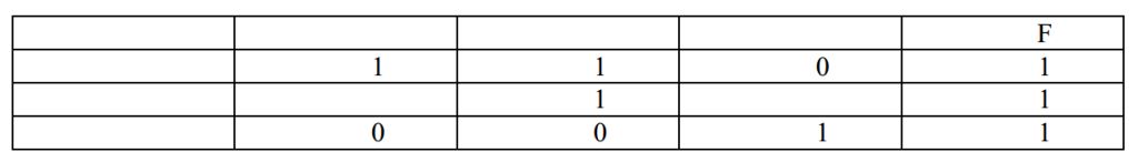 Дан частично заполненный фрагмент, содержащий неповторяющиеся строки таблицы истинности функции F.
