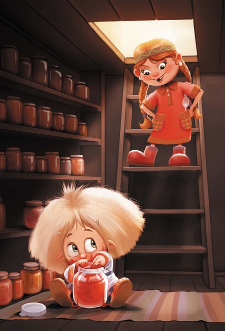 – Да я только попробовать… Это твоё? Извини… – Домовёнок, краснея от стыда, вытащил руку из банки, закрыл её крышкой и аккуратно поставил обратно на полку.