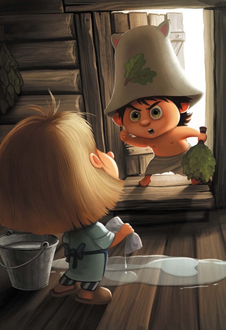 – Я баню свою отмыть пытаюсь! Не мешай! – ответил домовёнок и ещё усердней принялся оттирать стены.