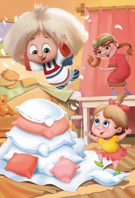 – А давайте усложним? Надо от порога добраться до стола и прыгнуть в подушечный рай, не наступая на пол! Кто со мной?