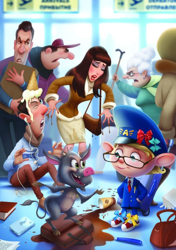 Прилетел чертёнок Луканька в аэропорт и давай хулиганить – людей ссорить. Одного толкнёт, другому на ногу наступит, третьему куртку испачкает, всех накручивает, злит. Сделал гадость – сердцу радость.