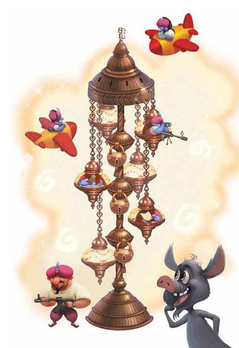 – Разведка доложила, что Волшебник, как только ему вернули древние камни, поместил их в лампу, которая днём и ночью охраняется джиннами. Нет ни одного существа на планете, которое могло бы обхитрить всех этих джиннов сразу. Так что украсть камни будет очень сложно. Почти невозможно. – Ведьма подошла к Бантику, ткнула в него указательным пальцем и заговорщически прошептала: – Но я знаю, как их достать даже из-под носа у тысячи джиннов!