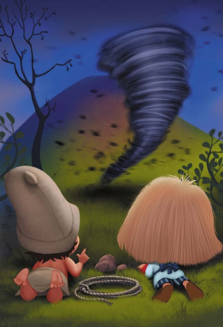 – Порядок – основа всего хорошего. Нельзя позволять соседским чертям силу нашей ведьме придавать. А то нам с тобой не поздоровится. – С этими словами баневёнок привязал к верёвке камень и кинул в самую середину вихря, зацепил верёвкой ногу ведьмы, замотал и как дёрнет! ведьма как заорёт!