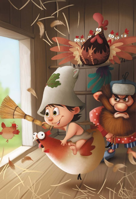– Зато с тех пор твой сосед не зарится, что у тебя двор чище, лошади лучше. Боятся тебя. Вместе мы всех победим! – Веничкин схватил метлу и, как меч, поднял вверх. – Мы всех сильнее! Мы всех победим! Никакая Яга нам не страшна! Тра-та-та, тра-та-та! – Баневёнок прыгал по двору с коровы на лошадь, с лошади – на поросят! Домовёнок молча наблюдал за ним и поглядывал на Дворового, который всё больше и больше злился. А баневёнок влетел с метлой в курятник и оседлал курицу, как лошадь.
