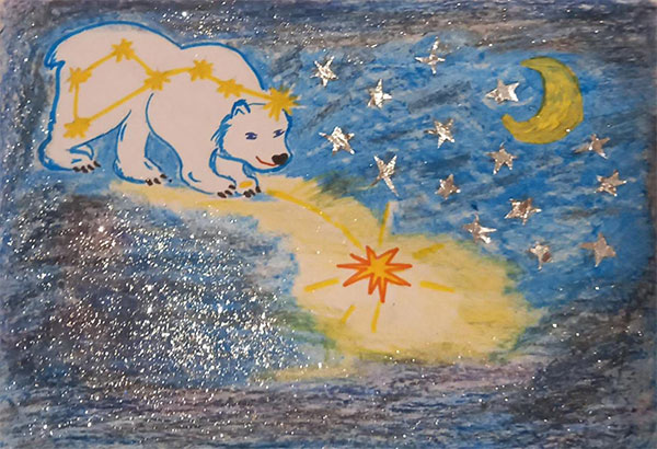 Девочка Мария:Ей только пять лет,Смотрит на звёзды,На их ярчайший свет.Глядит она на небоВ подзорную трубу:"Малую МедведицуЯ быстро найду!"