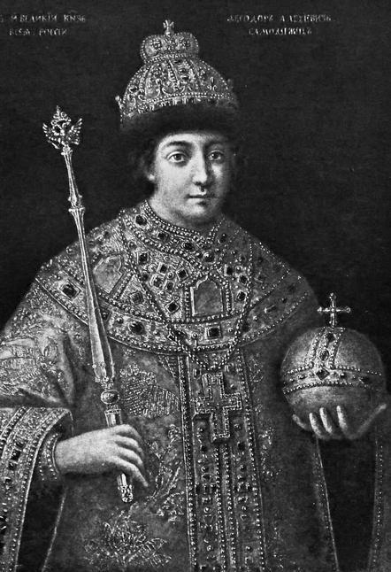 До февраля 1676 г., когда скоропостижно скончался царь Алексей Михайлович, царский двор был, пожалуй, одним из самых веселых и светских мест на Руси. Наталье Кирилловне было всего-то двадцать шесть лет, когда она овдовела. На престол взошел ее пасынок Федор, человек добрый и мягкий, но слабый здоровьем: в юности его по недосмотру челяди переехал возок.