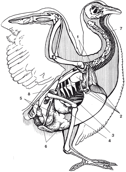 Рис. 3. Расположение воздухоносных мешков в теле голубя: