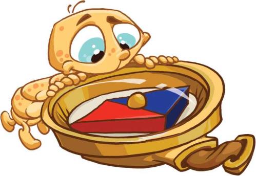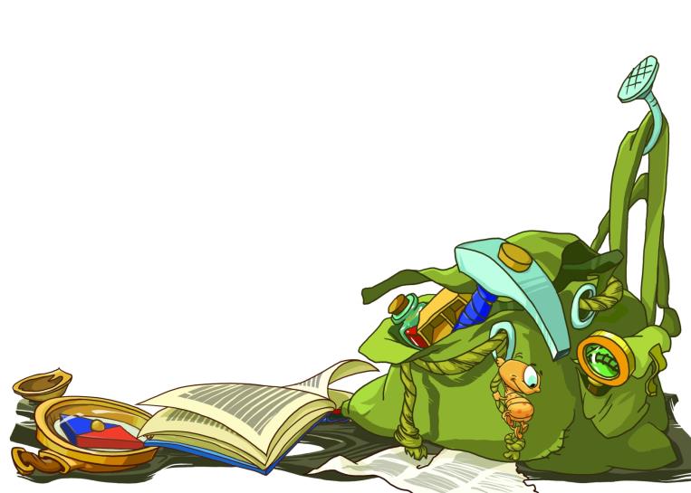 Никем не замеченный, малыш спустился по своей шёлковой ниточке прямо в мешок и начал с жаром обследовать его содержимое. Чего там только не было! Листы бумаги с таинственными знаками и рисунками, круглый предмет со стрелкой внутри, металлический предмет, соединённый с деревянной палкой, россыпь потрясающе красивых камней, большой котелок, тревожно пахнущий дымом костра, и ещё много, много всего того, что совершенно необходимо было тщательно осмотреть.