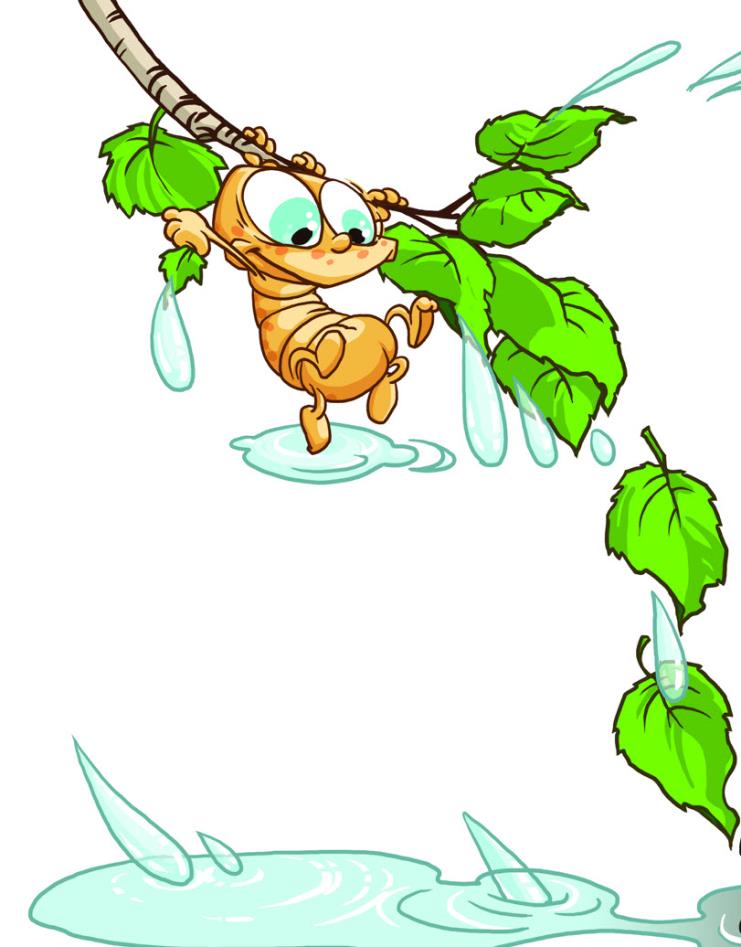 гусеничка, а он тогда испугался и полез на дерево, и так высоко ,