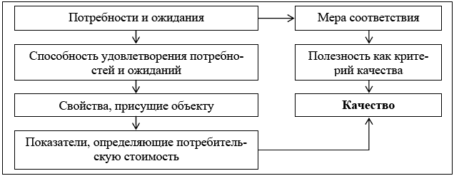 Рассмотренные концепции качества (философская, экономическая и юридическая) позволили определить составляющие категории качества: