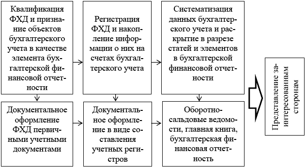 Бухгалтерский учет, в широком смысле, есть система подготовки и представления бухгалтерской финансовой отчетности как неотъемлемая часть системы внутреннего контроля экономического субъекта[7]; в более узком значении – учетный процесс, который начинается с квалификации факта хозяйственной деятельности и завершается систематизированным представлением данных бухгалтерского учета в бухгалтерской финансовой отчетности. И в том и другом понимании в основе бухгалтерского учета лежит совокупность последовательных и взаимосвязанных этапов формирования бухгалтерской информации и ее раскрытия в бухгалтерской (финансовой) отчетности. Можно выделить три основных этапа учетного процесса: