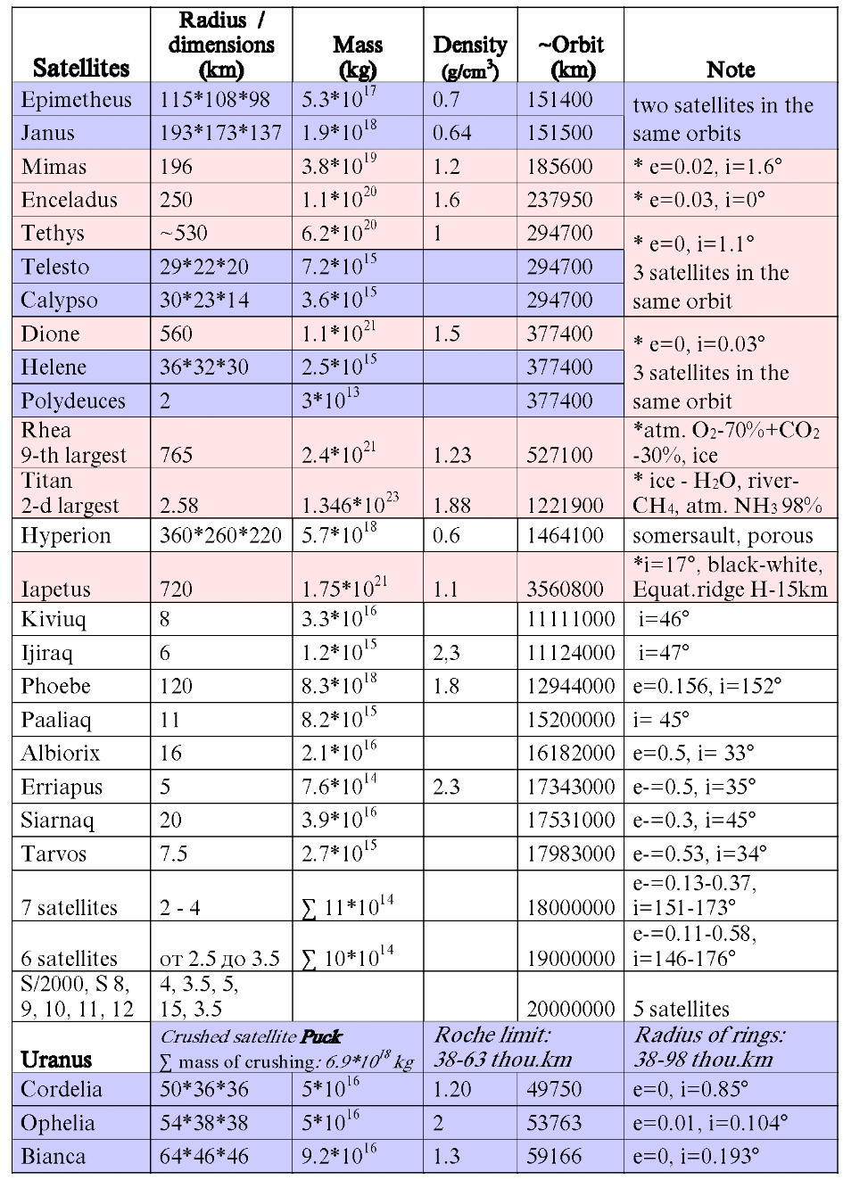 Saturn Н-96%, Не-3%, р-0.687 g/cm3;