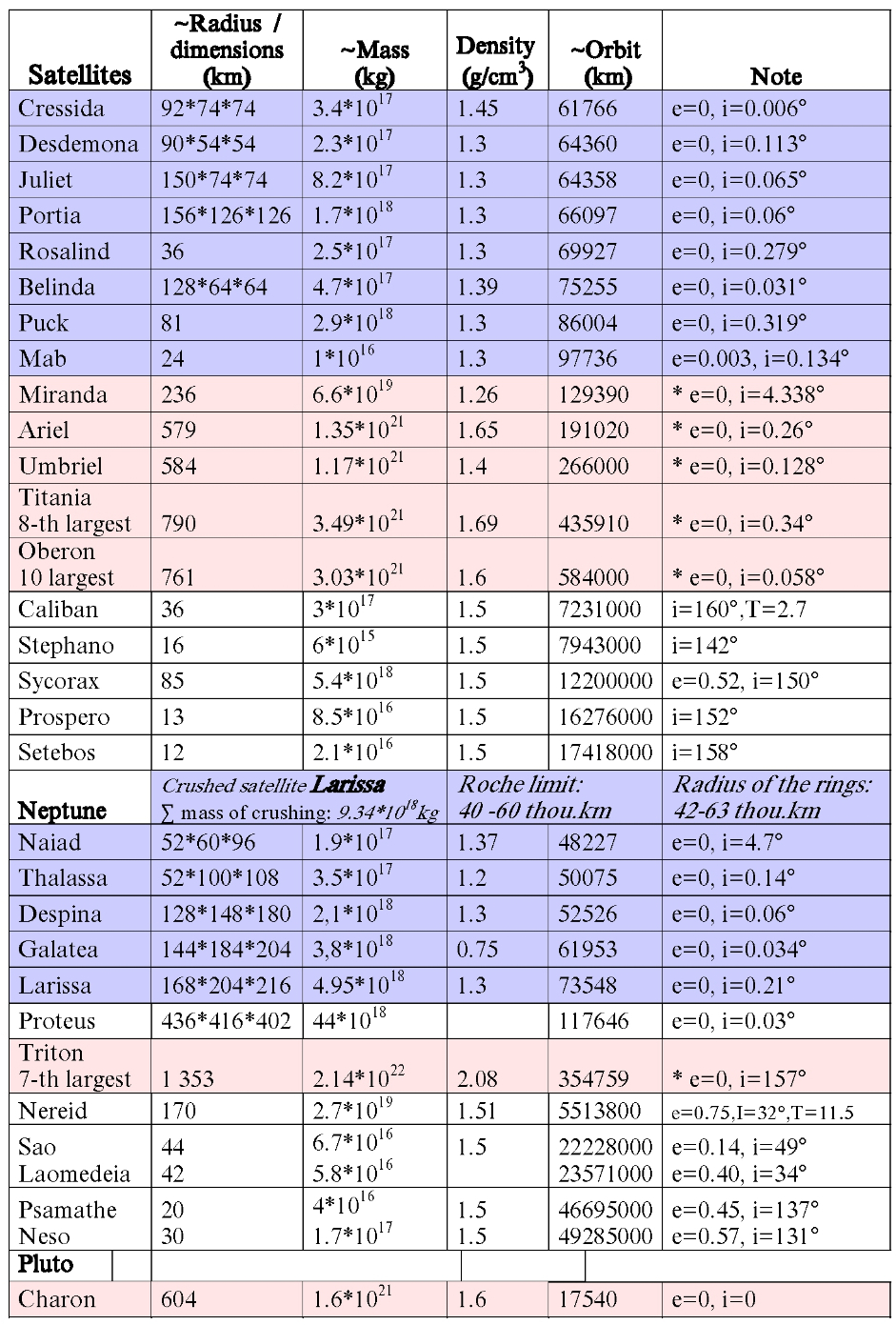 Table 4. Satellites of the planets of the Solar System