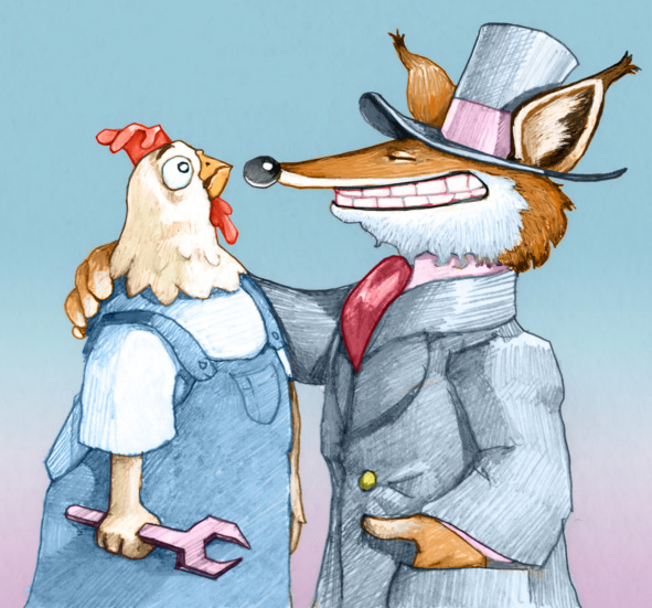 В лесу, где упавшая сосна.В большой теплой норе жил Заяц и его жена.Зайчата выросли давно,Но в гости прибегают всё равно.Зайчиха с подарками пошла внуков навестить.Заяц остался дома. В окошко глядит.Вдруг выходит лиса из самой гущи леса.Стучится в дверь: «Откройте! Я из Собеса!»Заяц пускает лису в свою нору.Лиса: «Анкету надо заполнить. Я спешу!Сегодня в Собесе собрание,Вас с женой приглашают на заседание!»Вечером супруги пошли в Собес.А там тишина – один густой лес.Вернулись, а в норе поселилась Лиса.«Согласно документу, нора теперь моя!»Заяц с зайчихой к медведю пошли.«Михайло Потапыч, горю нашему помоги!»Мишка быстро лису выгнал из лесаВместе со сказочкой о Собесе.Зайцы на Новый год елку нарядилиИ всю лесную семью пригласили.Мораль же сей басни простая —Не подписывайте документы, не читая.