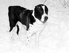 Общий склад, конституция не одинаковы. Встречаются собаки сырые, массивные, очень напоминающие сенбернаров, и собаки более сухого склада. Эта двойственность лучше всего замечается по степени брылятости, складкам кожи, легкости бега. Голова массивная, широкая и длинная. Перегиба почти нет, почему рыло кажется длинным, но широким. Глаза небольшие, сидят глубоко, мало выразительные, злобные. Шея прямая, с сильно развитым загривком. С брюшной стороны от гортани и груди у собак сырой конституции тянется складка кожи, образующая подгрудок. Спина слегка вогнутая, крестец немного выше холки, ноги прямые, довольно длинные и очень крепкие, толстые. Лапа большая. Грудь не очень глубокая, но широкая…