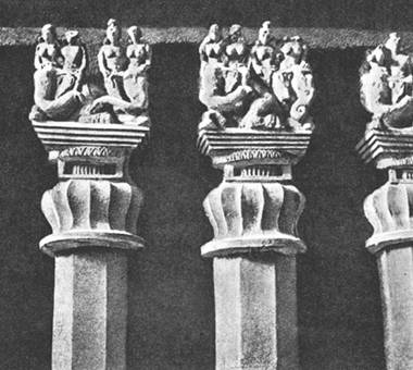 Эти чрезвычайно сложные изваяния отличаются мягкой гармонией и ритмичностью пластических линий. Каждая фигура капителей представляет часть целого, что весьма типично для индийской скульптуры.
