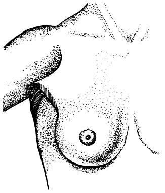 Вначале врач внимательно осматривает обе железы в нескольких положениях (стоя, стоя с поднятыми руками, лежа и сидя). Здесь особое внимание уделяется состоянию кожи желез, симметричности их расположения, форме, размеру и состоянию соска и околососкового кружка. Изменение даже одного из этих признаков учитывается при постановке предварительного диагноза. Например, изменение цвета кожи является признаком воспалительных процессов (мастита) или опухолевого роста.