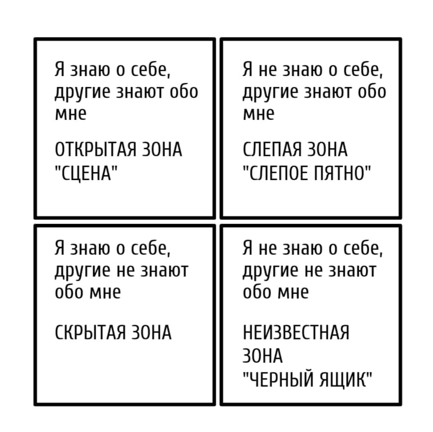 И тут самое время предложить рассмотреть технику, которая называется «Окна ДжоХари».