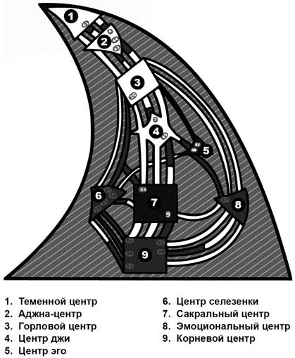 Каждый из девяти центров отвечает за свою тему – характеристику энергии – и связан со своей системой органов.