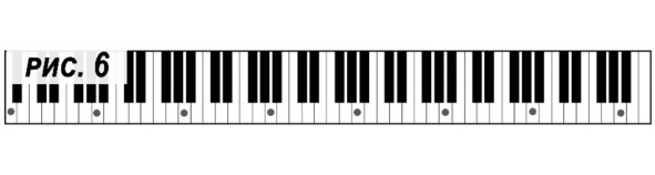На (рис. 6) отмечены все ноты «A» на клавиатуре.