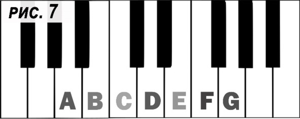 От ноты «A» считаем подпорядку белые клавиши. (рис.7).