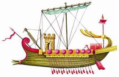 Древние корабли представляли собой деревянные конструкции, но уже тогда были прекрасно приспособлены к бою. Древние моряки применяли метательные орудия, которые устанавливались на носу военного судна.