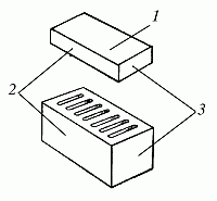 Рис. 5. Стороны кирпича и камня: 1 – постель; 2 – ложок; 3 – тычок