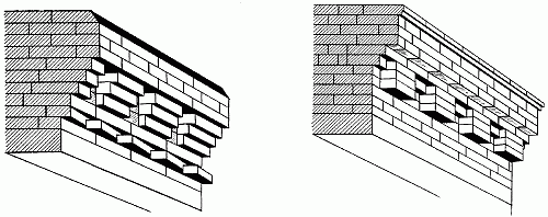 Уступ (рис. 8, б) – кладка, смещенная относительно основной плоскости стены по вертикали.