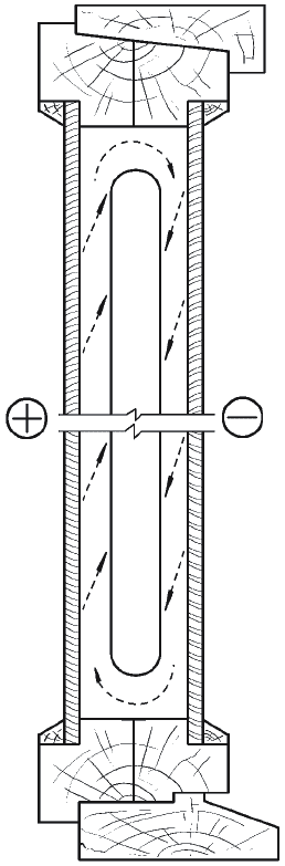 Рис. 4. Конвекция, возникающая при двойном остеклении оконного проема