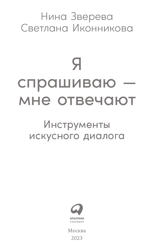 Мы обе – и Нина Зверева, и Светлана Иконникова – много лет проработали журналистами: Нина – на телевидении, Светлана – в газетах и журналах. Мы взяли сотни (если не тысячи) интервью у самых разных людей, и наши герои время от времени говорили: «Ой, вы меня сейчас натолкнули на интересную мысль!» Или: «Ой, вот сейчас я понял, что…» Или: «Ой, откуда вы это знаете?»