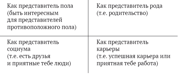 4. Как представитель карьеры. Карьера, в данном случае, тоже рассматривается в более широком смысле. У тебя сложилась «вертикальная» карьера, или у тебя есть устраивающая работа, т. е. ты занимаешься любимым делом, или есть работа, приносящая тебе устраивающий тебя доход. А лучше, если все вместе.