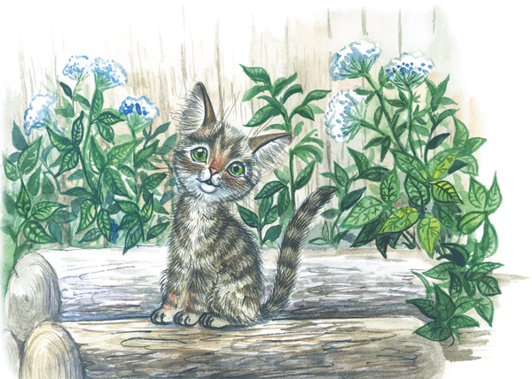 Тут я увидела на нижнем брёвнышке маленького котёнка. Дочь взяла его на руки и показала мне. Это было несчастное худое существо размером с мою ладонь и с длинным, длиннее тельца, хвостом. На шее шёрстка была вытерта, будто зверька держали на привязи. Пока я разглядывала котёнка, дочь молча смотрела на меня.