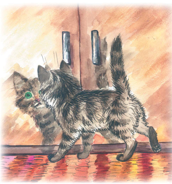 Некоторое время мы даже не могли заняться разборкой вещей. Мы смотрели на кошку. А она, обнюхав всё в прихожей, пошла в большую комнату, где насмешила нас тем, что шла вдоль полированной мебели и неотрывно смотрела на своё отражение. Туда-сюда. Потом ей это надоело, и она пошла обследовать квартиру дальше.