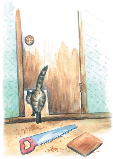 – Дверь туалета закрыта, а у кошки есть дырочка для входа.