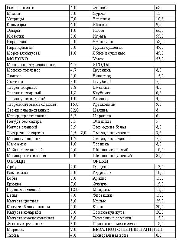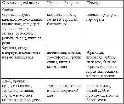 Подсчитаем у.е. индивидуально для себяА теперь давайте подсчитаем очки индивидуально на примере двухнедельного меню. Садясь на кремлевскую диету, нельзя исключать из своего рациона овощи, фрукты и ягоды. Не стоит также забывать изредка употреблять в пищу хлеб и крупы. Вводите эти продукты в свое меню, руководствуясь данными таблицы: