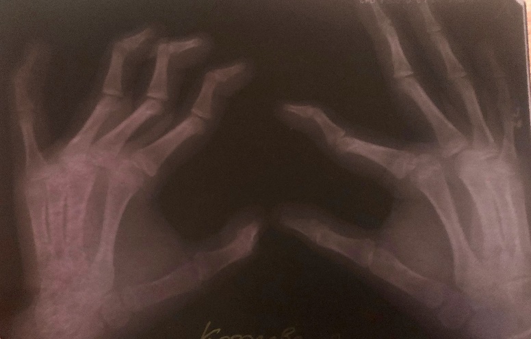 Я написала им письмо в отдел госпитализации, приложила фотографии обследований, рентгена и деформированных пальцев рук. К этому моменту деформированных пальцев было два на одной руке и три на второй. Отекшие коленные суставы, плечи и первые пальцы стоп. Сколиоз, куда же без него. Плоскостопие, как водится. И деформация грудной клети – не очень сильно, но была. Через какое-то время пришел ответ: нас готовы пригласить по ОМС на консультацию к травматологу-ортопеду. Отлично! Так как это консультация, необходимости в сборе дополнительных обследований не требовалось. Мы просто взяли все, что у нас было, и направление по форме 057/у-04 и поехали.