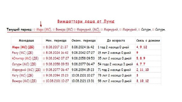 Теперь спускаемся ниже на главной странице гороскопа и находим таблицу Вимшоттари Даши от Луны.