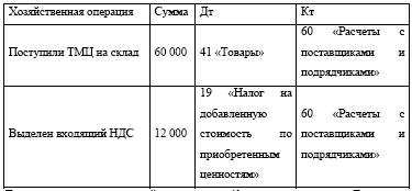 Поступили товары с НДС (20%) Сумма по товарной накладной 72 000 руб. Необходимо выделить НДС из общей суммы. Поступление товара нужно отразить 2 записями: